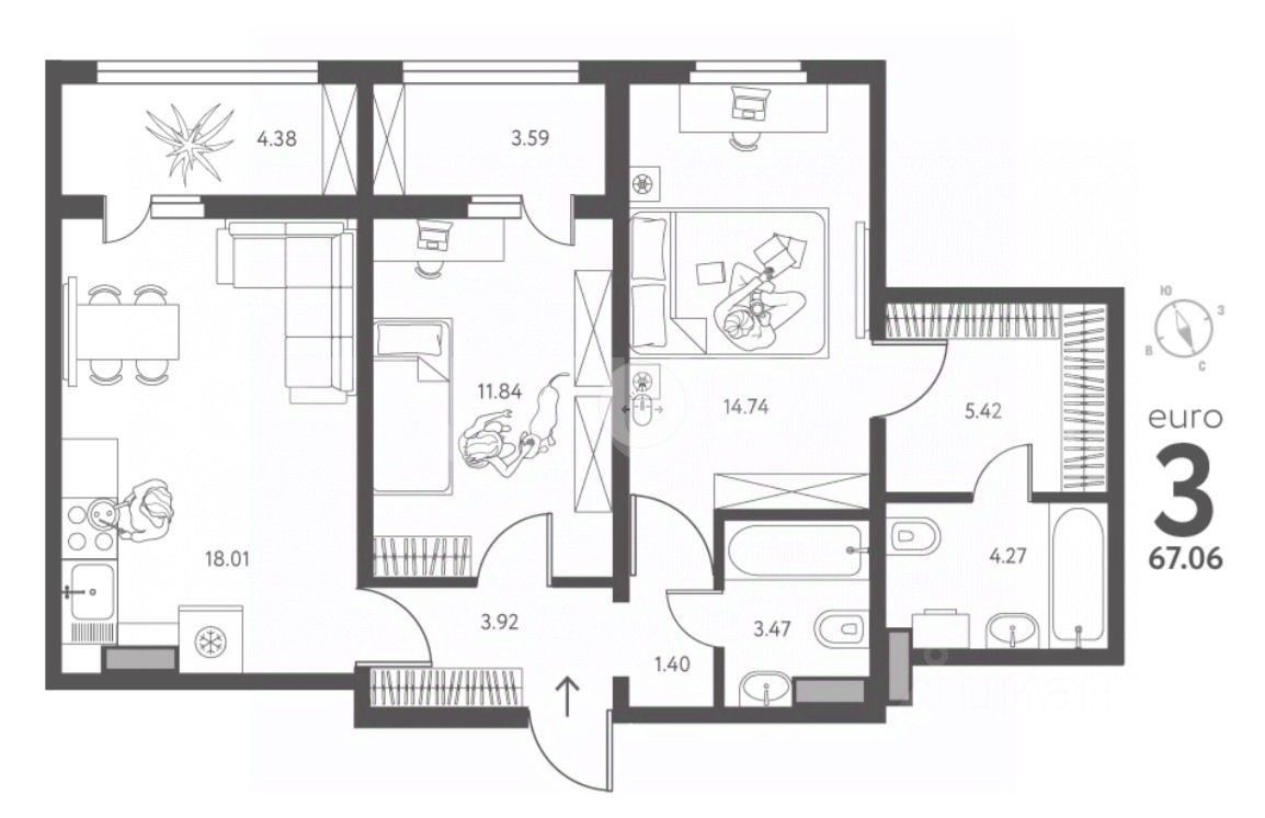 евро планировка (покупаете 2-к а функционал как у 3 комнатной квартиры)