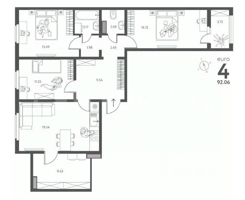 Квартира с европланировкой.