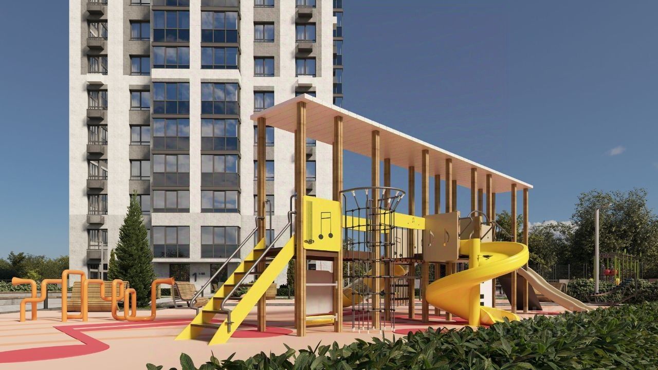 три детских сада;две школы;различные магазины и аптеки;крупные торговые центры и рынок.Фасады двух высотных зданий сольются в едином пространстве и цветовой гамме. 25-этажные дома будут выполнены в строгих и по-настоящему стильных серо-бежевых тонах с использованием современных фиброцементных панелей.