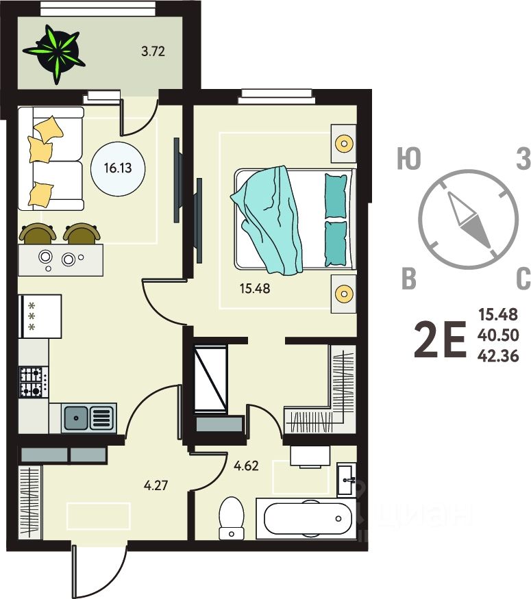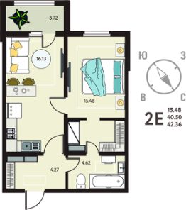 Продается 1-комн. квартира в ЖК "ИНСТЕП.МЕХАНИЗАТОРОВ" на 8 этаже. Квартира без отделки, после оформления собственности можно делать ремонт. Общая площадь: 42.36 кв.м., жилая: 15.48 кв.м., площадь просторной кухни-столовой: 16.13 кв.м. Все окна выходят на одну сторону. В квартире один балкон, один совмещенный санузел. Высота потолков 2.64 м.