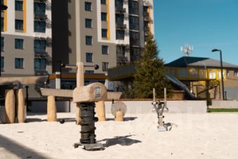 Концепция благоустройства сделана по специальному архитектурному проекту, с малыми архитектурными формами из металла с желтыми цветовыми акцентами, гармонирующими с фасадом домов. Для детской площадки предусмотрены игровые комплексы из натурального дерева в эко-стиле. Предусмотрено продуманное озеленение по дендроплану с автополивом и разноуровневое наружное освещение.
