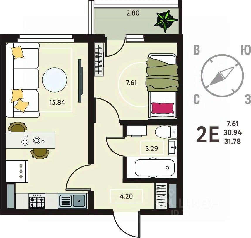1-комн. квартира от застройщика в ЖК "ИНСТЕП.МЕХАНИЗАТОРОВ" на 8 этаже. Квартира без отделки, после оформления собственности можно делать ремонт. Общая площадь: 31.78 кв.м., жилая: 7.61 кв.м., площадь просторной кухни-столовой: 15.84 кв.м. Все окна выходят на одну сторону. В квартире один балкон, один совмещенный санузел. Высота потолков 2.64 м.