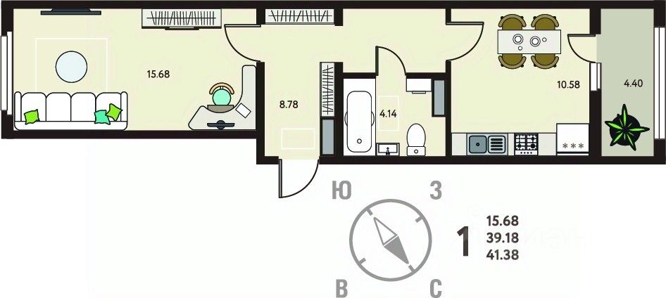 Просторная однокомнатная квартира в ЖК "ИНСТЕП.МЕХАНИЗАТОРОВ" на 8 этаже. Квартира без отделки, после оформления собственности можно делать ремонт. Общая площадь: 41.38 кв.м., жилая: 15.68 кв.м., площадь просторной кухни-столовой: 10.58 кв.м. Квартира - распашонка, без проходных комнат, окна выходят на paзные стороны дома. В квартире один балкон, один совмещенный санузел. Высота потолков 2.64 м.