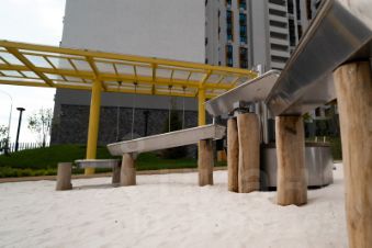 Концепция благоустройства сделана по специальному архитектурному проекту, с малыми архитектурными формами из металла с желтыми цветовыми акцентами, гармонирующими с фасадом домов. Для детской площадки предусмотрены игровые комплексы из натурального дерева в эко-стиле. Предусмотрено продуманное озеленение по дендроплану с автополивом и разноуровневое наружное освещение.