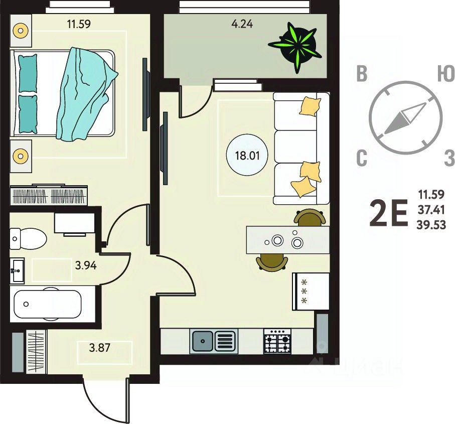 Просторная 1-комн. квартира в ЖК "ИНСТЕП.МЕХАНИЗАТОРОВ" на 18 этаже. Квартира без отделки, полностью готова к чистовой отделке и дальнейшему ремонту. Общая площадь: 39.53 кв.м., жилая: 11.59 кв.м., площадь просторной кухни-столовой: 18.01 кв.м. Все окна выходят на одну сторону. В квартире одна лоджия, один совмещенный санузел. Высота потолков 2.64 м.