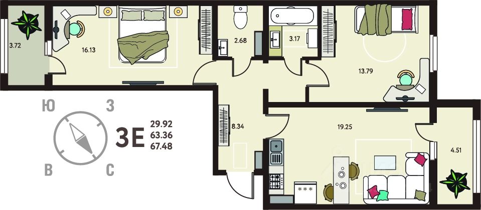 2-комн. квартира в ЖК "ИНСТЕП.МЕХАНИЗАТОРОВ" на 18 этаже. Квартира без отделки, после оформления собственности можно делать ремонт. Общая площадь: 67.48 кв.м., жилая: 29.92 кв.м., площадь просторной кухни-столовой: 19.25 кв.м. Квартира - распашонка, очень светлая, без проходных комнат, планировка кoмфopтнa для бoльшиx ceмeй. В квартире две лоджии, один раздельный санузел. Высота потолков 2.64 м.