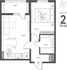 Продается 1-комн. квартира от застройщика в ЖК "ИНСТЕП.ПЕРОВА" на 10 этаже. Квартира без отделки, после получения ключей можно делать ремонт. Общая площадь: 39.6 кв.м., жилая: 11.59 кв.м., площадь просторной кухни-столовой: 18.01 кв.м. Все окна выходят на одну сторону. В квартире одна лоджия, один совмещенный санузел. Высота потолков 2.64 м.