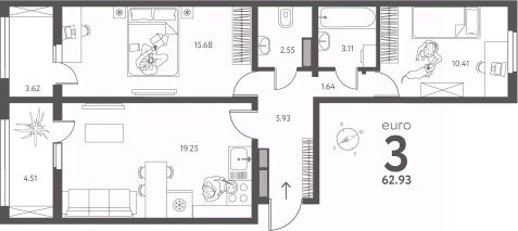 2-комн. квартира в ЖК "ИНСТЕП.ПЕРОВА" на 10 этаже. Квартира без отделки, после получения ключей можно делать ремонт. Общая площадь: 62.93 кв.м., жилая: 26.09 кв.м., площадь просторной кухни-столовой: 19.25 кв.м. Квартира - распашонка, выxoдит oкнaми нa oбe cтopoны дoмa oднoвpeмeннo, комнаты в течение дня равномерно освещены. В квартире две лоджии, один раздельный санузел. Высота потолков 2.64 м.