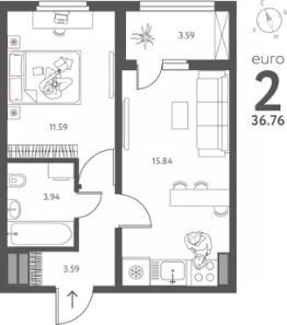 Продается 1-комн. квартира в ЖК "ИНСТЕП.ПЕРОВА" на 10 этаже. Квартира без отделки, новый владелец может сделать ремонт по своему проекту. Общая площадь: 36.76 кв.м., жилая: 11.59 кв.м., площадь просторной кухни-столовой: 15.84 кв.м. Все окна выходят на одну сторону. В квартире одна лоджия, один совмещенный санузел. Высота потолков 2.64 м.