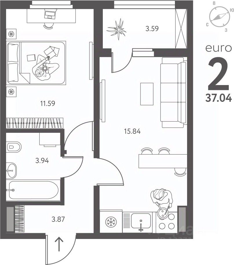 Продается 1-комн. квартира в ЖК "ИНСТЕП.ПЕРОВА" на 10 этаже. Квартира без отделки, полностью готова к чистовой отделке и дальнейшему ремонту. Общая площадь: 37.04 кв.м., жилая: 11.59 кв.м., площадь просторной кухни-столовой: 15.84 кв.м. Все окна выходят на одну сторону. В квартире одна лоджия, один совмещенный санузел. Высота потолков 2.64 м.