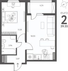 Продается однокомнатная квартира в ЖК "ИНСТЕП.ПЕРОВА" на 16 этаже. Квартира без отделки, после оформления собственности можно делать ремонт. Общая площадь: 39.55 кв.м., жилая: 11.59 кв.м., площадь просторной кухни-столовой: 18.03 кв.м. Все окна выходят на одну сторону. В квартире одна лоджия, один совмещенный санузел. Высота потолков 2.64 м.