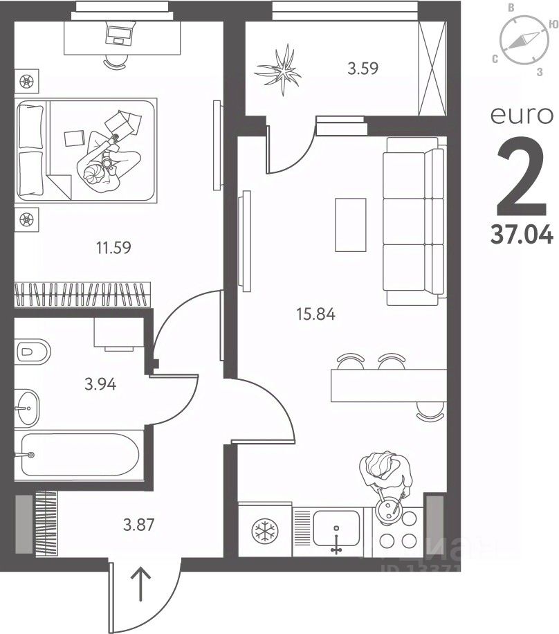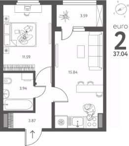 1-комн. квартира от застройщика в ЖК "ИНСТЕП.ПЕРОВА" на 16 этаже. Квартира без отделки, после выдачи ключей можно делать ремонт. Общая площадь: 37.04 кв.м., жилая: 11.59 кв.м., площадь просторной кухни-столовой: 15.84 кв.м. Все окна выходят на одну сторону. В квартире одна лоджия, один совмещенный санузел. Высота потолков 2.64 м.