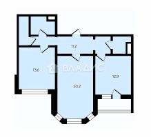 Общая площадь: 66,9 кв. м. Жилая площадь: 33,1 кв. м. Площадь кухни: 13,6 кв. м. Количество комнат: 2 (20,2 кв. м и 12,9 кв. м). Этаж: 15 из 17. Высота потолков: 2,7 м. Ремонт: Чистовая отделка.Лоджия - Есть. Санузлы: 1 раздельный, 1 совмещённый.