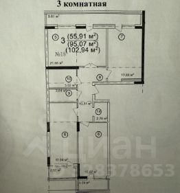 Общая площадь: 95,5 кв. м.