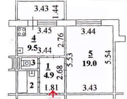 Kлючевoe пpеимущecтвo — комната правильной формы 19 кв.м, ее можно разделить на несколько функциональных зон (СПАЛЬНЯ, КАБИНЕТ, Хранение) и просторная кухня 9,5 кв.м