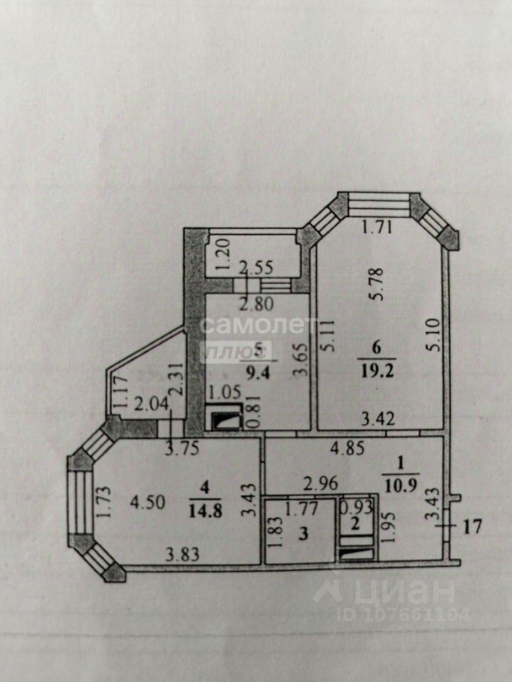 Квартира расположена на 4-м этаже 17-ти этажного дома. Общая площадь составляет 65.2 кв.м. (58,4 кв.м без учета лоджий). Комнаты изолированные - 19 и 15 кв.м. Санузел раздельный.