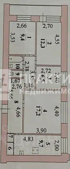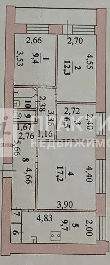 Площадь и планировка: Общая площадь — 72,3 кв. м, жилая — 45,4 кв. м. Площадь кухни составляет 9,7 кв. м. Комнаты изолированы, их площади: 12,3 + 6,5 + 9,4 + 17,2 кв. м. Высота потолков — 2,6 м. Такая планировка идеально подходит для комфортного проживания большой семьи.