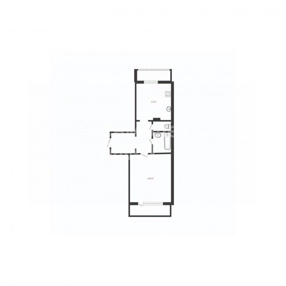 Комната и кухня расположены на разные стороны.