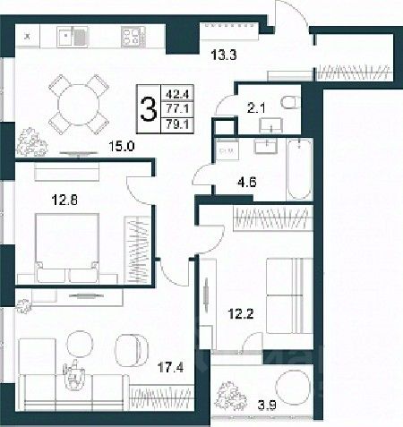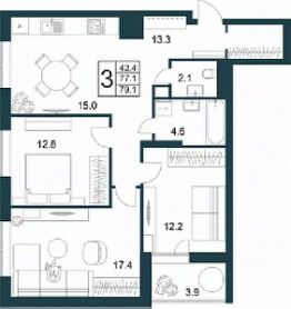Продаётся 3-комнатная квартира в строящемся доме (корпус 1 (поз. 18.1)), срок сдачи: II-кв. 2026, общей площадью 79.1 кв.м., на 21 этаже. Жилой дом "Теорема" - ваше верное решение! 21-тажный дом спроектирован по монолитно-кирпичной технологии, одной из надежных и долговечных методов застройки. Находясь в собственной квартире, можно наслаждаться прекрасными видами из окон на городские пейзажи и парк "Европейский", дышать свежим воздухом и получать удовольствие от каждого дня!