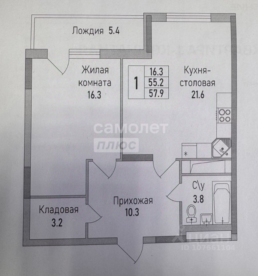 Общая площадь57,9 м²