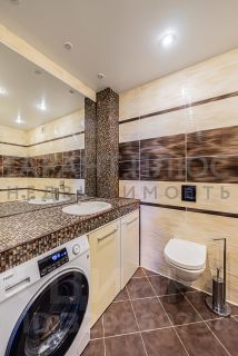 В квартире предусмотрены удобные системы хранения — просторная гардеробная и встроенный шкаф в спальне. Совмещённый санузел оформлен в светлых тонах с качественной плиткой. Установлены стиральная машина и водонагреватель.