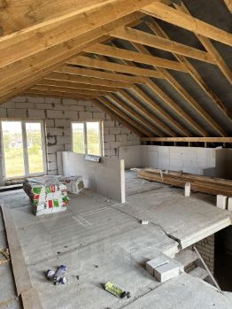Дом из газосиликата, перекрытия железобетонные плиты, крыша - мягкая кровля, пластиковые окна.