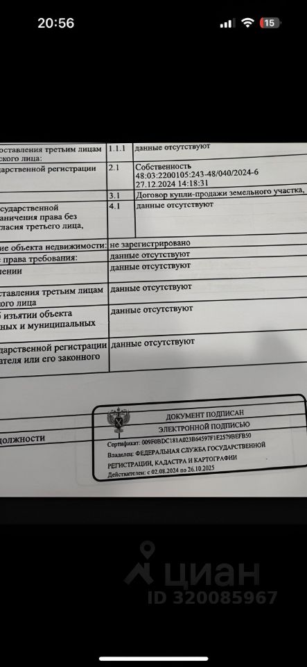 Кадастровый номер участка 48:03:2200105:*** указал продавец