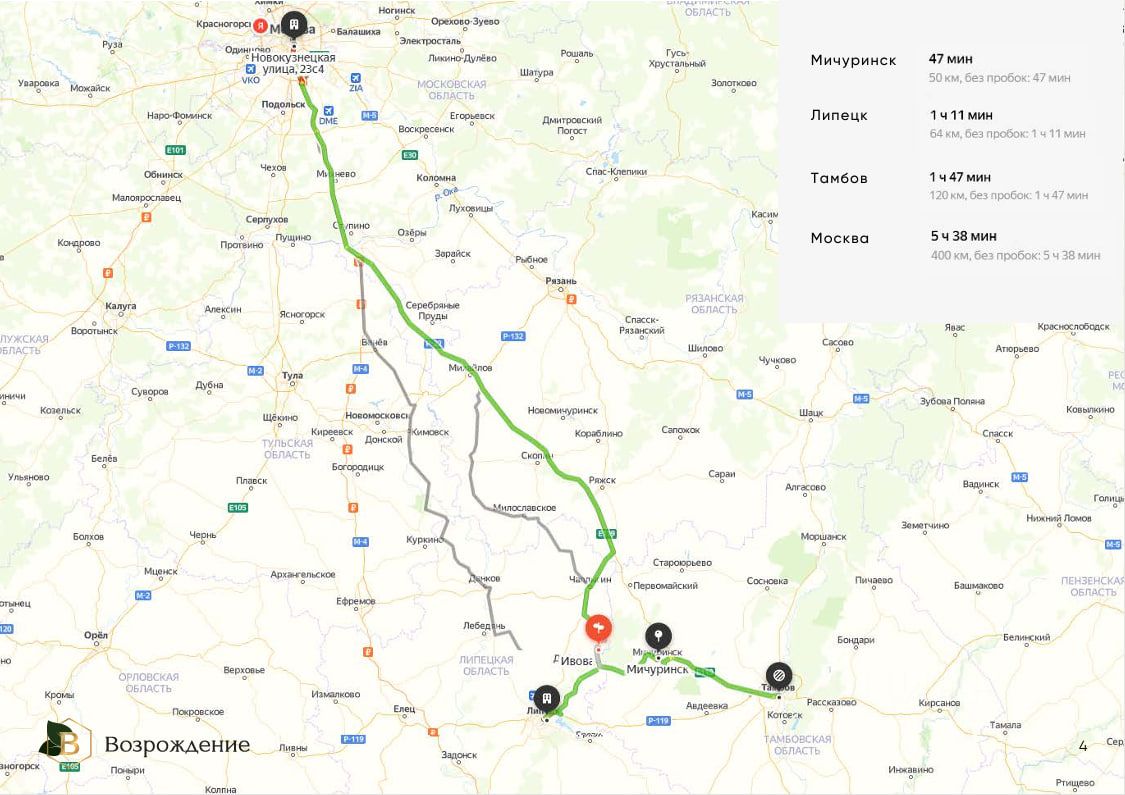 • Тамбов: 120 км (1:50 ч.)