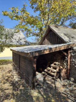 Расположен в глубине участка (на 30м от улицы) много фруктовых деревьев.