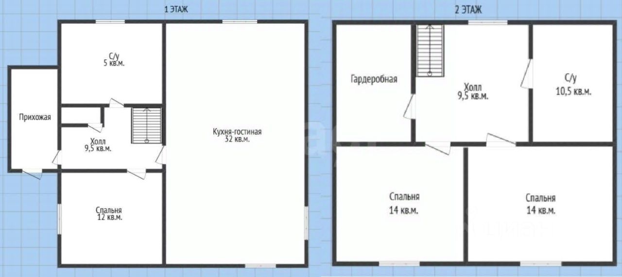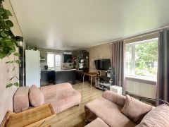 На первом этаже расположены кухня-гостиная, спальня, санузел, на втором - 2 спальни, санузел и гардеробная. потолки натяжные, пол - ламинат.