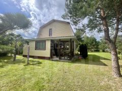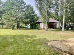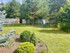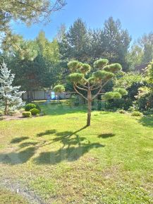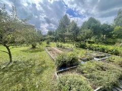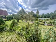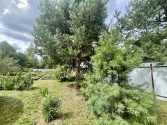 Прекрасный ландшафтный дизайн участка располагает к отдыху среди сосен и елей. Молодой сад, где растет ремонтантная малина, белая слива, боярышник, вишня-шоколадница, грецкий орех, шелковица, ирга, спаржа, голубика, жимолость, груша, рябина, ежевика безшиповая, яблони колоновидные , "Орловский синап" и "Конфетное", черная смородина.