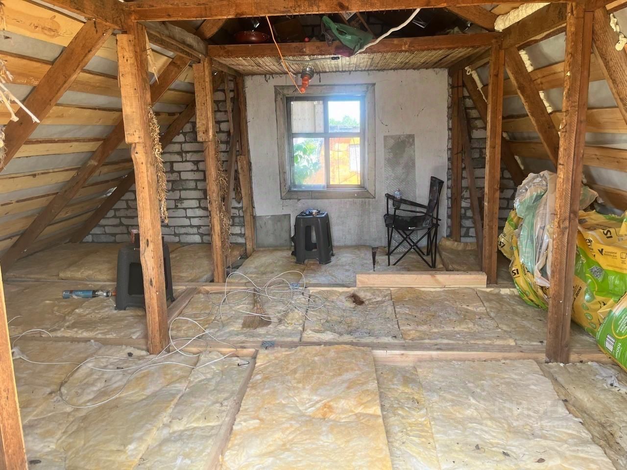 На участке посажены малина, смородина, крыжовник, яблоня. Есть качели. Между участками поставлен забор в 2025 году. Земля 5 соток. На территории находится строительный вагончик для бытовых нужд. Второй этаж (мансарда) утеплён минеральной ватой. Стена на мансарде будет снесена, вместо этого обошьётся ОСБ-плитой. Пол также будет обшит. На участке установлена камера. Есть видео участка и дома.