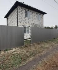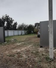 Участок ровный, прямоугольный огорожен профлистом с откатными въездными воротами.