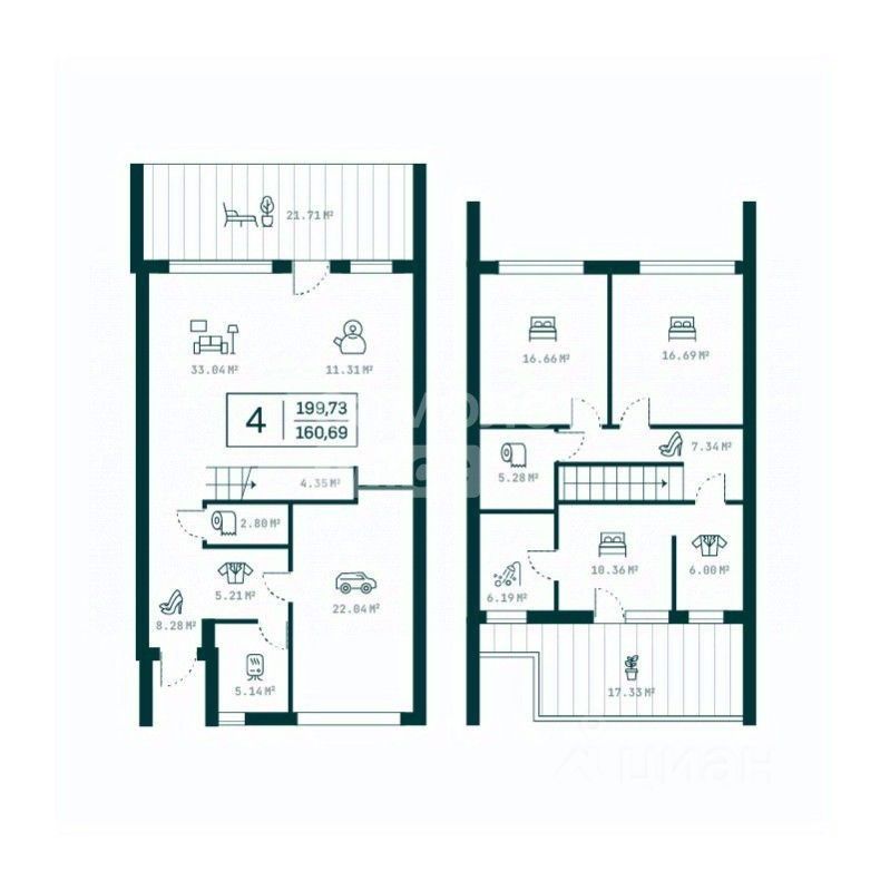 174 м²