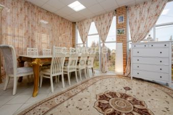 Панорамное остекление позволяет в разное время года любоваться погодой. В интерьер очень гармонично вписывается камин.