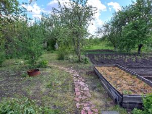 Просторный участок площадью почти 8 соток. На территории растут плодоносные деревья и кусты: яблоко, груша, слива, виноград, красная и чёрная смородина, малина, крыжовник.