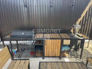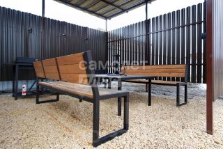 БЕСЕДКА С МАНГАЛЬНОЙ ЗОНОЙ: 16 м2. Мангал, гриль, печь для казана, рабочая поверхность, свет, вода, канализация. Мебель в стиле Lоft (2 лавочки и стол).