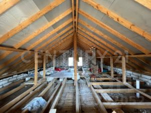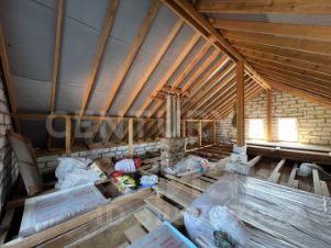В доме полностью сделана новая кровля. Залит армирующий пояс по периметру дома с подъемом 80 см, что позволило получить единое свободное пространство 70 м2 мансарды с высоким потолком.