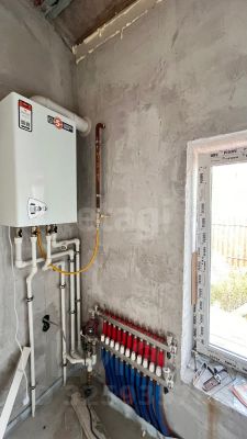 Коммуникации все проведены, разводка электрики, теплого пола, установлен газовый котел.
