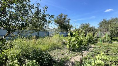 Сам дом кирпичный, с шиферной кровлей и железобетонными перекрытиями. Внутри есть баня и подвал, общая площадь составляет 25 кв. м. На участке растут плодовые деревья, клубника, разнообразные цветы, виноград. На территории есть летний душ и с/у, забор.