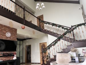 Двухэтажный дом 180 кв.м из газобетонных блоков на плиточном фундаменте с ЖБ перекрытием, отделан облицовочным кирпичом. Дом спроектирован для проживания большой семьи, предусмотрена просторная гостиная 40 кв.м. со вторым светом. Также оборудованы 4 спальни, одна на первом и три на втором этаже. На кухне есть вся необходимая техника (посудомоечная машина, газовая плита на 5 конфорок, духовой шкаф) и панорамные окна с видом на сад. На каждом этаже есть совмещенный санузел с окном.