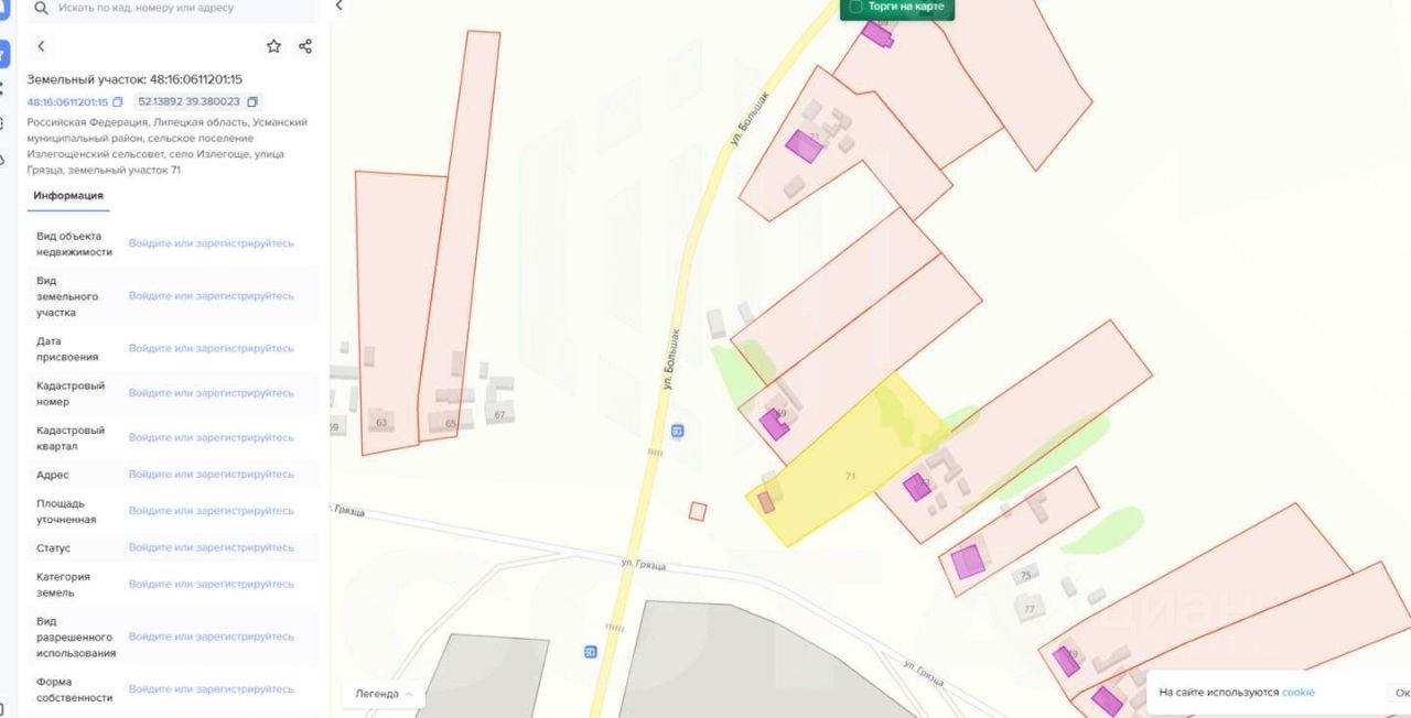 Продается земельный участок в селе Излегоще Липецкой области, форма участка-правильная 31x95 м.