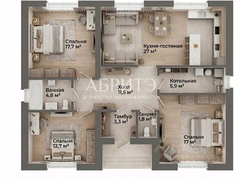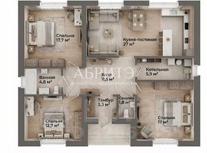 - 3 изолированные спальни (17,7 кв.м, 12,7 кв.м и 15 кв.м)- всем хватит личного пространства