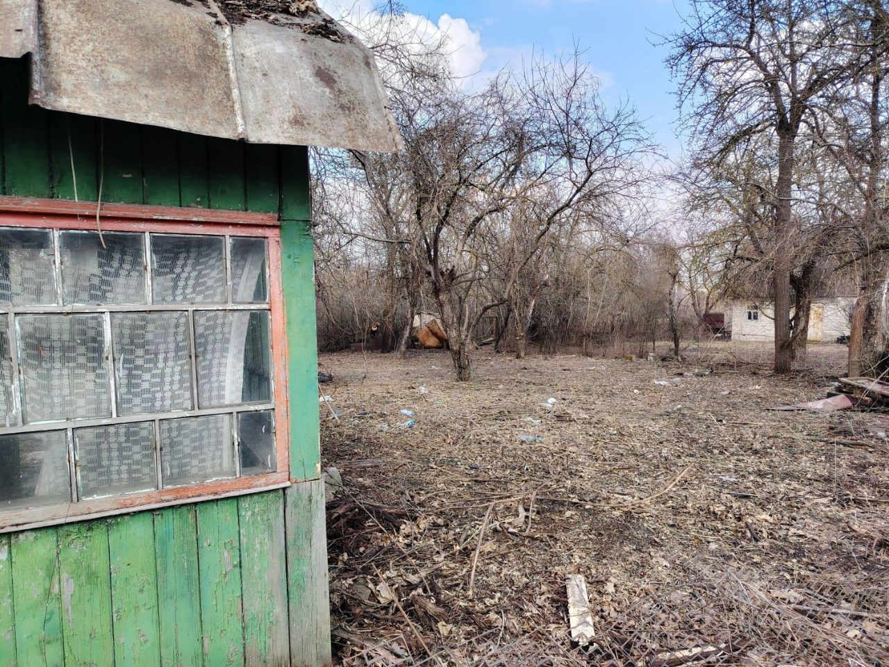 Участок правильной формы, расчищен от старых деревьев, садовый домик скорее под снос, но послужит для хранения инвентаря на первое время.
