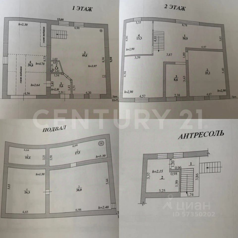 Второй этаж: комната 1 - 20,9 м2; комната 2 - 25,2 м2; комната 3 - 13, 3 м2; комната - 8,6 м2; холл - 50, 9 м2.