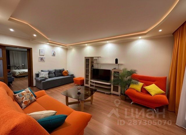 • Гостиная: дизайнерский диван, большой телевизор