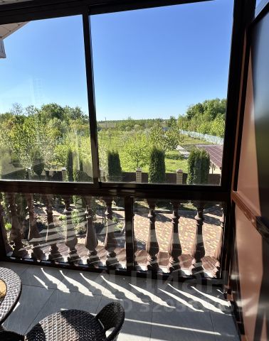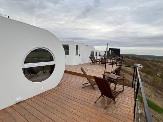 — обустроенный мебелью балкон с видом на лес и реку Каменку