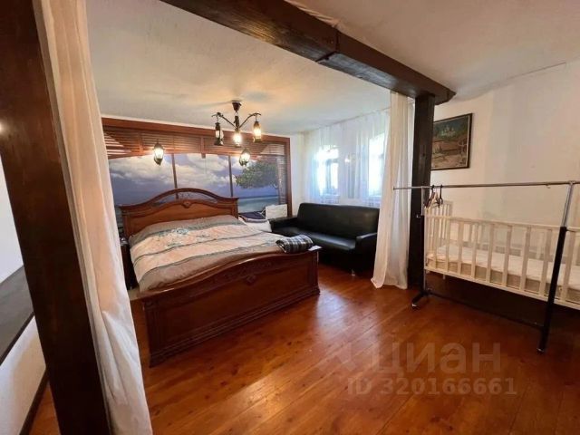 На 1 этаже дома — две спальни, 8 мест, а на мансардном этаже огромная комната — открытая студия на весь этаж. 24 спальных места.